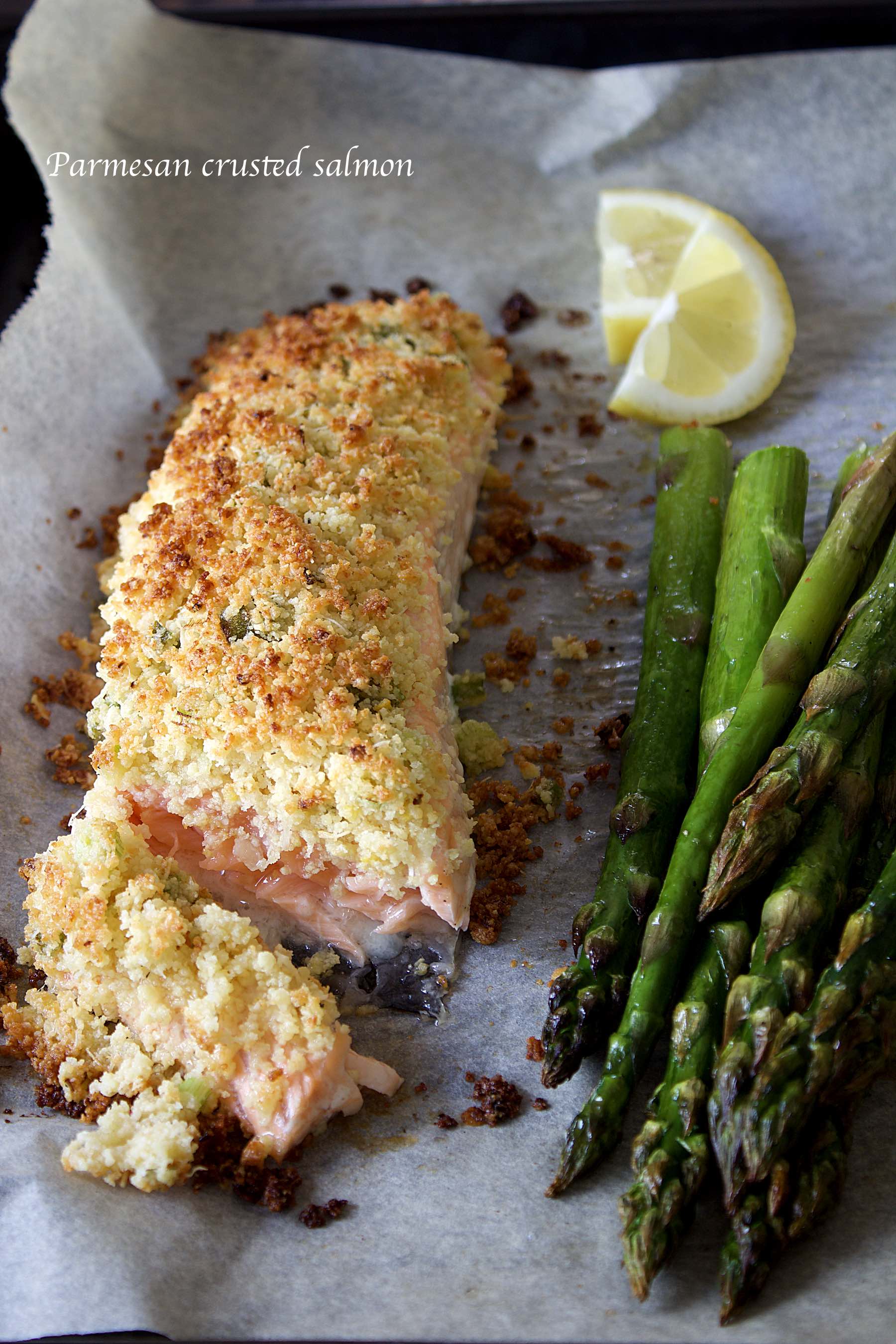 Je mets les asperges 10 minutes avant le saumon en général pour qu'elles soient bien fondantes aussi. J'aime aussi servir avec des petites pommes de terre sautées ou même du riz. Ça se marie avec pleins de trucs, c'est sympa et vous pouvez pimper un peu la chapelure aussi.