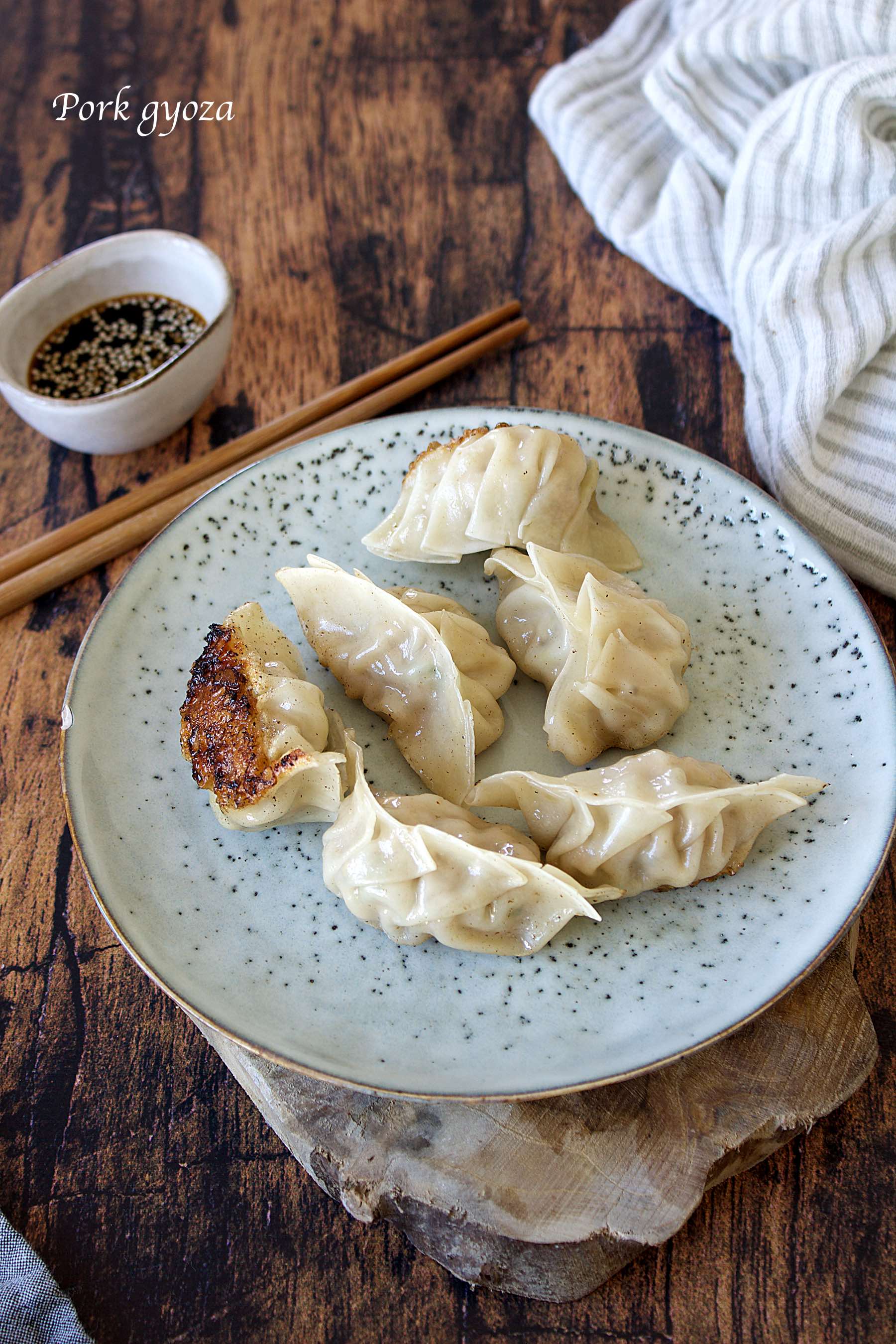 Sacré projet dans lequel je me suis lancé en voulant faire des gyoza! Ils étaient cependant délicieux avec cette farce porc gingembre shiitaké, le seul problème c'est... le pliage! Même en regardant la vidéo 12 fois j'ai bien galéré et ils étaient loin d'être parfait.
