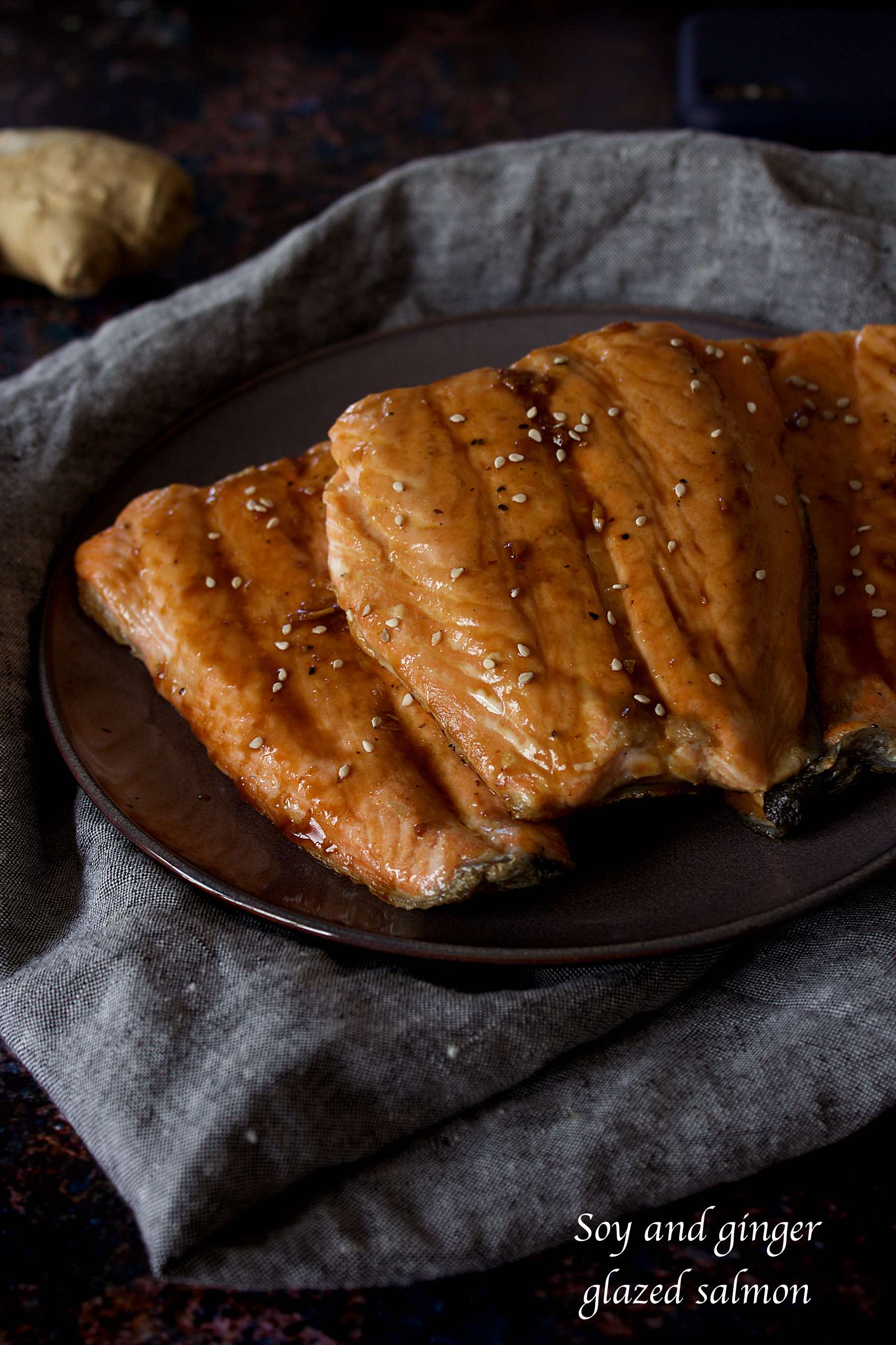Saumon laqué au soja et au gingembre (4 personnes) :