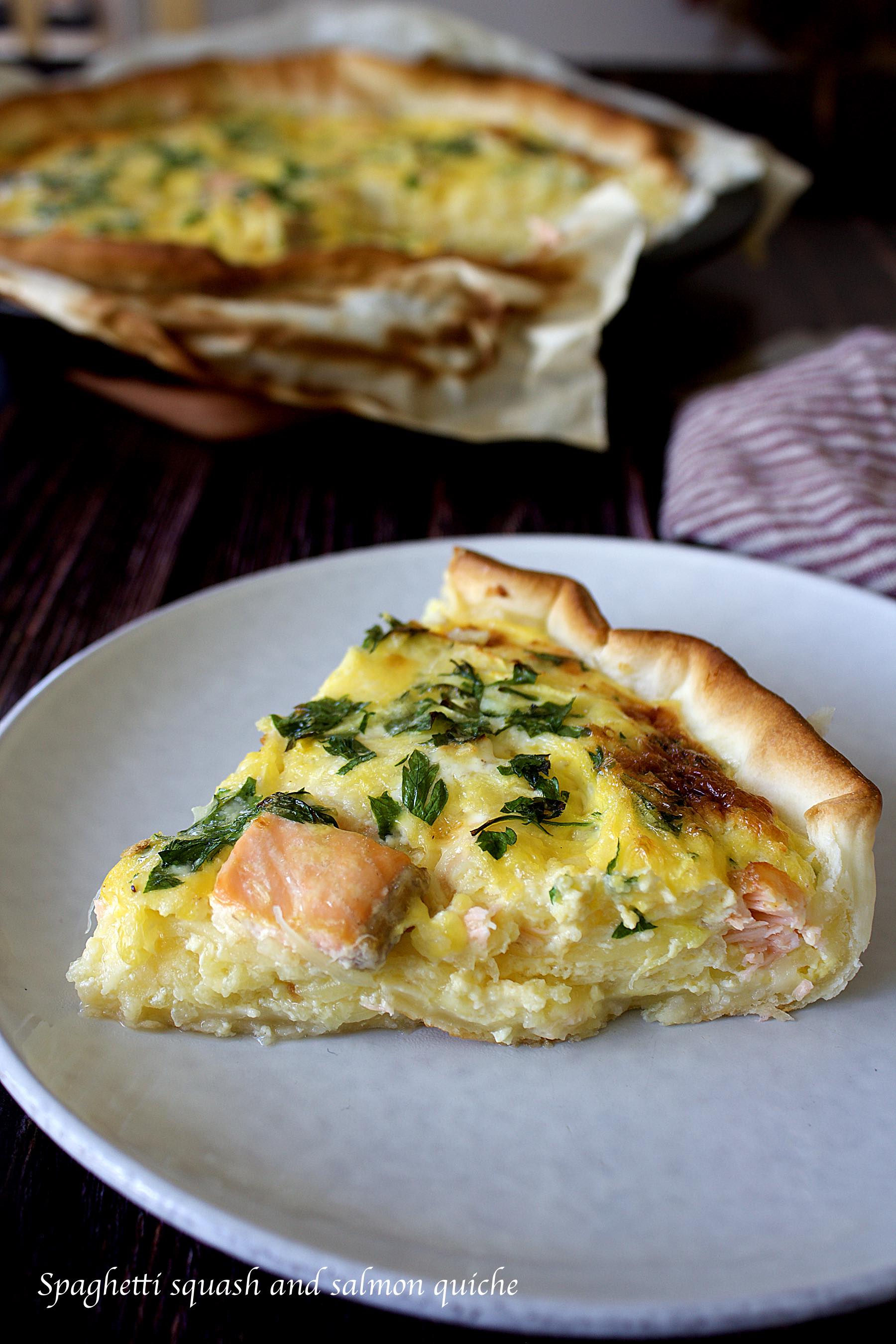 Les quiches c'est, pour moi, vraiment le repas rapide et complet par excellence. On y balance des protéines, des légumes et on laisse ça cuire tranquillement pendant qu'on fait autre chose (les devoirs, par exemple...). Celle-ci est à la courge spaghetti et au saumon frais, elle est gourmande et bien moelleuse grâce à la courge.