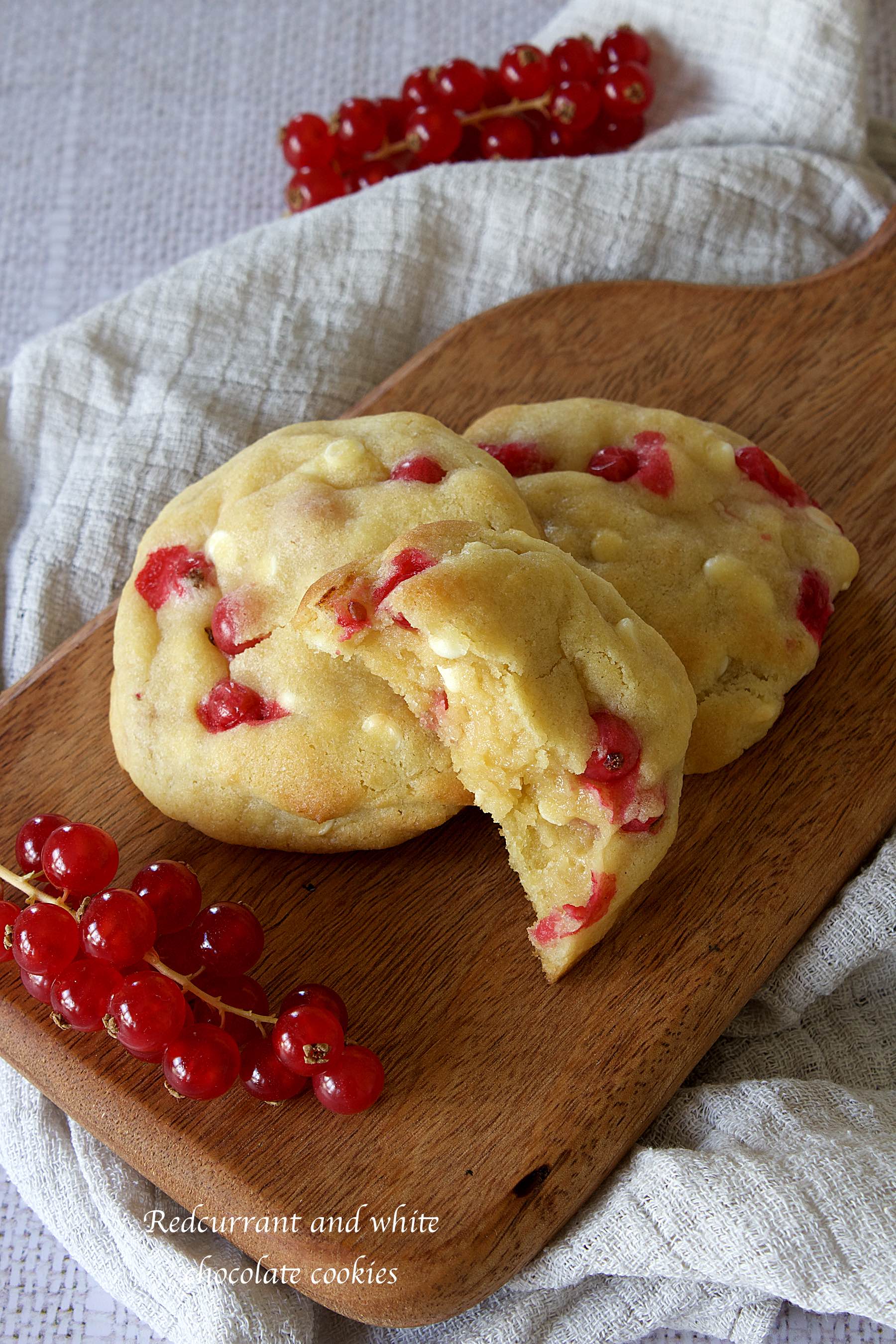 Ça fait longtemps que je n'avais pas posté de recette de cookies par ici, mais on se rattrape ! Voilà ces gigantesques cookies au chocolat blanc et aux groseilles. La groseille bien acide équilibre parfaitement ces cookies bien sucrés avec le chocolat blanc.