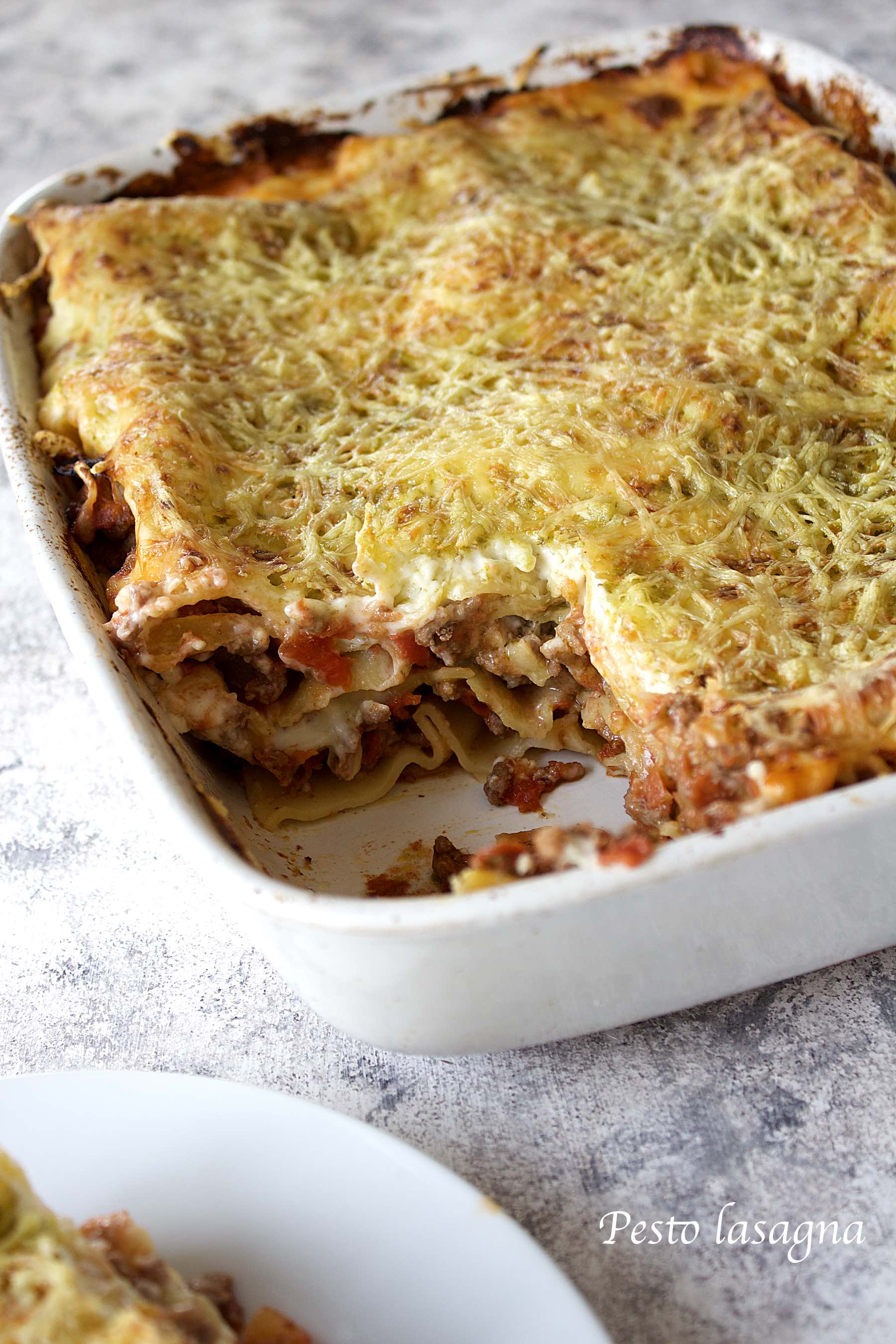 Des lasagnes à la bolognaise avec de la béchamel et du pesto... Ça a l'air bizarre mais c'était trop bon en fait ! Je ne sais pas d'où j'ai eu cette idée mais quelque chose me disait que ça pourrait être sympa et c'était carrément vrai.